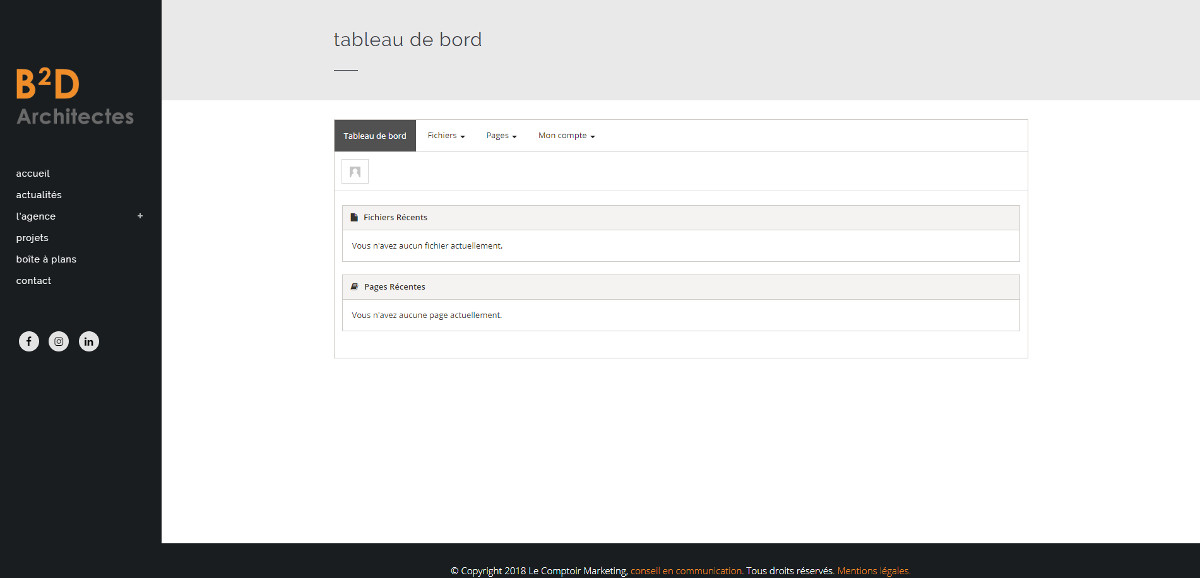 L’objectif était double : disposer d’un site vitrine mettant en avant les projets du cabinet tout en intégrant un outil collaboratif pratique pour le partage de documents techniques.
